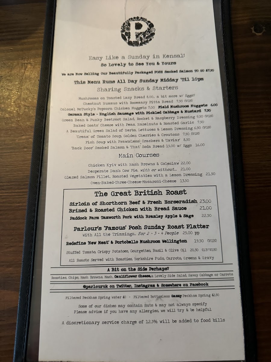 Step into a world of flavors at Parlour Menu, where every dish tells a story. Located at 5 Regent St, London NW10 5LG, this cozy spot serves up a delightful variety of mouth-watering options to satisfy all tastes. Whether you're in the mood for a hearty meal or something light, the menu offers something to please every palate. From fresh, seasonal ingredients to bold and comforting flavors, each dish is crafted with care. You’ll find everything from vibrant salads to succulent mains, all prepared with a focus on quality and flavor. Whether you're grabbing a quick bite or settling in for a leisurely meal, Parlour Menu is the perfect choice for any occasion.